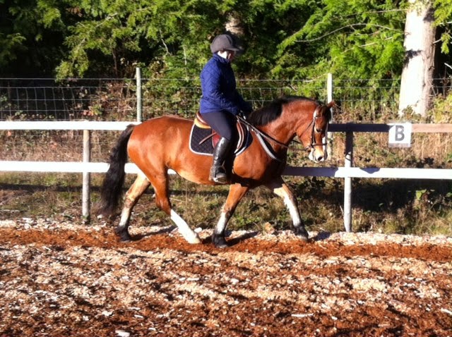 I was a bit down and out about the above. Also, if I'm honest, Ginger was such a good girl and finds everything so easy, I worry about getting on Midge and having a bad ride and making the inevitable comparisons to Ginger which simply aren't fair to little Bridget. I'm not supposed to have an obvious favorite, right? Instead, I just hopped on Bridget bareback and tied a loop in her lead rope and let her do what she does best, act as my personal taxi ride back to the barn :) I do have to give her credit though - I squeezed her lightly to get going and BOOM - she was so responsive! Someone remembers Friday's lesson! I played with leg yields as well on our way home and she was really very good. I'm feeling hopeful our next proper ride will be a good one.