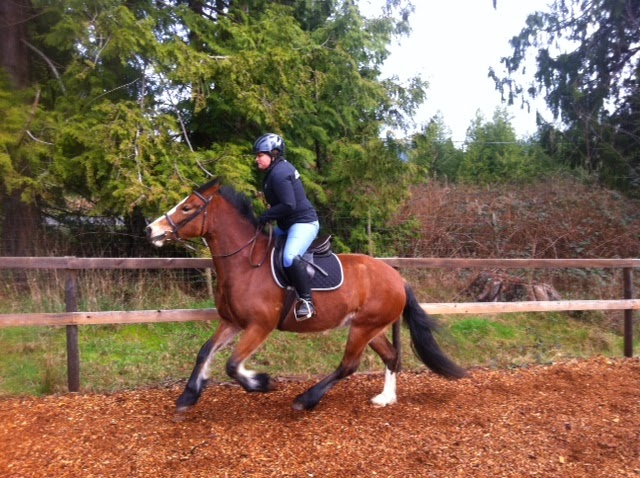 After a few minutes, I asked for a right lead canter depart and got it with minimal fuss, although she did have to scramble a little and get organized and broke to a trot before the corner after the long side.